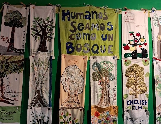 Mi árbol está casi listo ha tomado forma con , retazos , hilos y mucha esperanza para un mejor planeta .